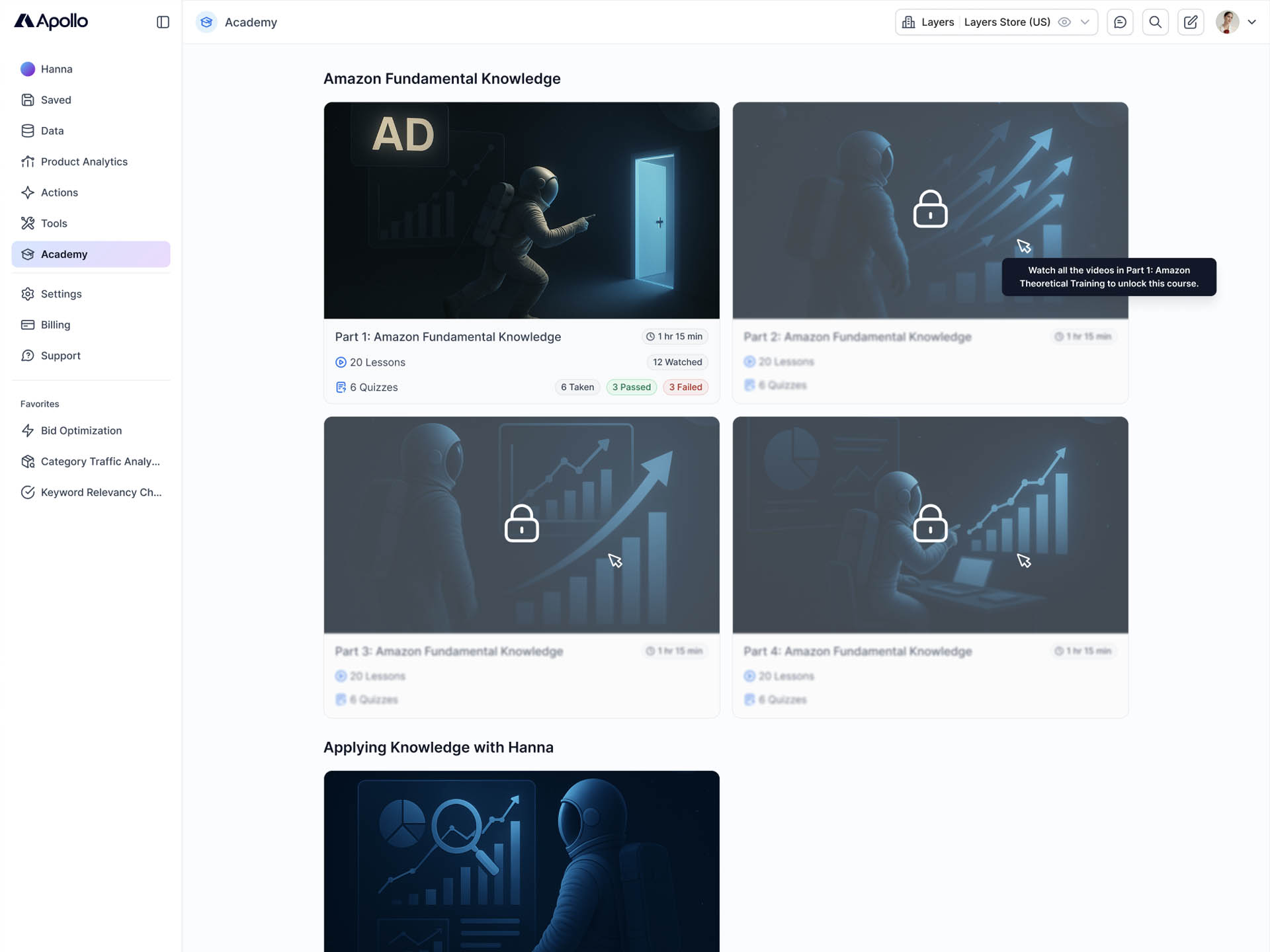 Apollo Academy brings together the expertise behind one of the world’s leading Amazon Seller education brands, trusted by over 100,000 active learners. Designed for both new and established sellers, Academy provides step-by-step guidance on researching categories, analyzing markets, and building advertising strategies that align with your goals. You’ll gain practical skills for configuring advanced optimization schedules, including bid, budget, and placement adjustments. By combining proven training with hands-on strategies, Apollo Academy empowers you to scale smarter and maximize profitability.