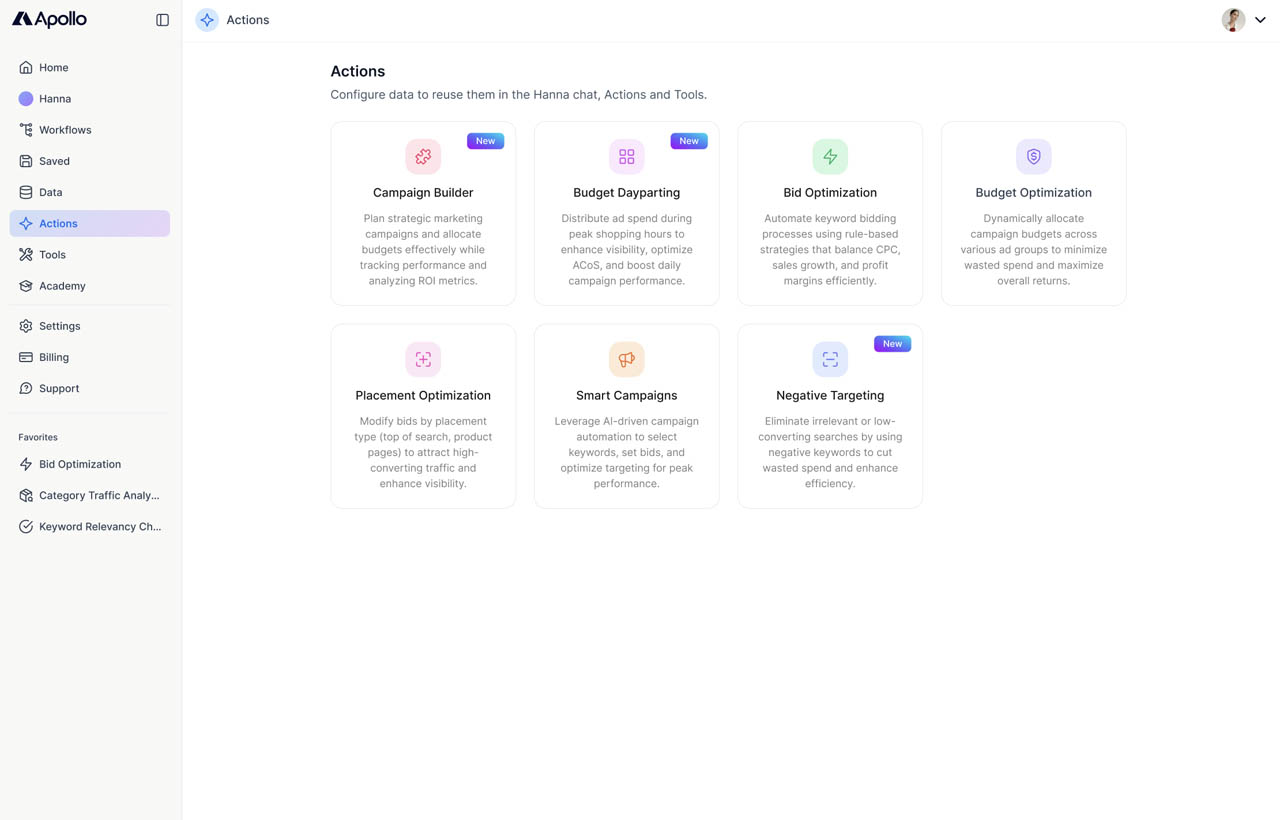 Hanna combines years of advertising expertise into one intelligent system that instantly analyzes your account, uncovers opportunities, and adapts to your goals. From scaling strategies and profit margin analysis to guided bid adjustments, placement insights, and campaign creation, every decision is backed by data. With integrated research and optimization tools, Hanna delivers insights that go beyond surface metrics.